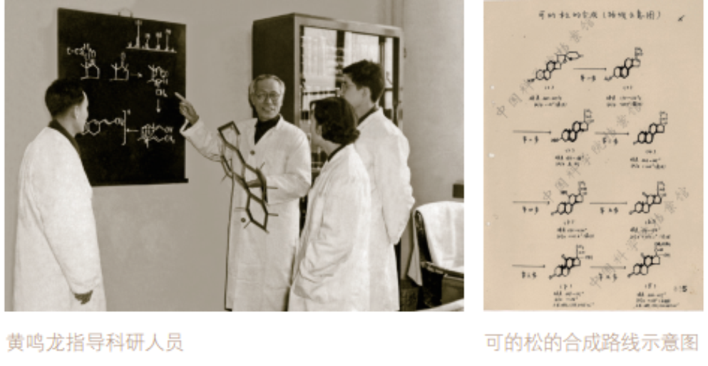 黄鸣龙带领科研人员以国产薯蓣皂素为原料合成的“可的松”扩试成功,协助工业部门很快投入了生产。将国外合成路线14步简化为7步,总得率从3%提升到8%。不但填补了我国甾体工业的空白,而且使我国相关合成方法跨进了世界先进行列。