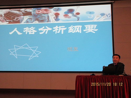 首先,明茏教官概括性的介绍了人格分析九分法和生命体的情绪分析法,以生命的进化为主线,向大家详细地讲解了生命体的特征、由简到繁的情绪特征以及情绪的划分方法。随后,他围绕示意图着重为大家讲解人格分析九分法。九型人格大致可分为三类人群,即较低级的愤怒型、较低级的恐惧型和较高级的悲伤型,这九种人格的情绪特征均源于负性情绪,彼此与众不同却又各有关联。最后,明茏教官对每一种人格配合图片进行举例说明,借助大家早已熟悉的影视人物形象诠释每一种人格代表特点,使抽象的理论变得通俗易懂。报告期间,明茏教官不时地走下讲台,与台下观众们互动,针对同学们踊跃提出的问题做出耐心的解答。