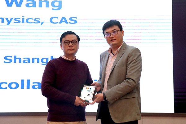 李昂研究员向王江云研究员颁发所庆讲座纪念牌