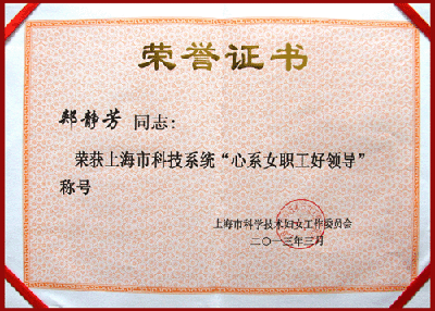 党委书记郏静芳同志荣获上海市科技系统“心系女职工好领导”称号