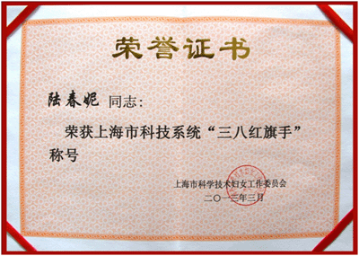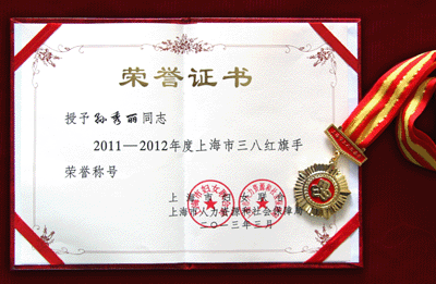 孙秀丽同志荣获2011-2012年度上海市”三八红旗手”荣誉称号