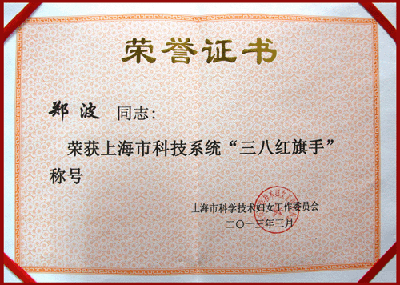 郑波、陆春妮同志荣获上海市科技系统“三八红旗手”称号