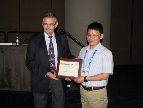 在8月14日落幕的第248届美国化学会年会中,中国科学院上海有机化学研究所的邓亮研究员荣获 Organometallics杂志与ACS Division of Organic Chemistry 授予的“Organometallics Young Investigator Fellowship 并做获奖报告。