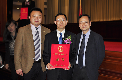 4月18日下午,上海市委、市政府在上海展览中心友谊会堂隆重召开了2015年度上海市科学技术奖励大会。杨雄市长主持会议,副市长周波宣读市政府表彰决定,市委书记韩正等领导为获奖代表颁奖,并作重要讲话。