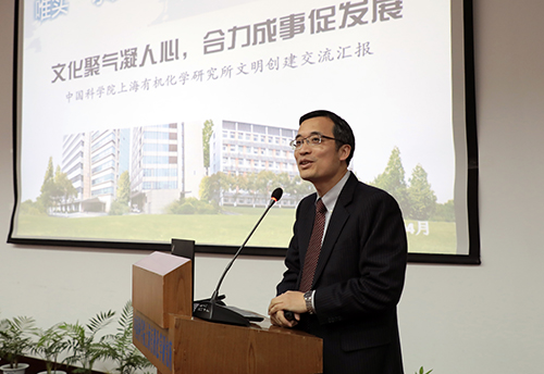 417日,市科技系统创新文化大调研暨文明创建现场推进会在上海有机所召开,会议总结表彰科技系统文明创建阶段性成果,并围绕创新文化建设情况举行座谈研讨。上海市科技党委副书记陈龙、宣传处处长陈琦、上海有机所党委书记胡金波,中科院上海分院党群工作处副处长朱熊,以及科技系统各文明创建单位相关负责同志60余人参会。