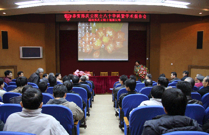 所党委书记郏静芳主持庆贺会,她说:今天各位领导、院士和研究员、各位同仁和同学,欢聚在这里共同庆贺陈庆云院士八十华诞,让我们以最热烈的掌声,欢迎今天来参加陈庆云院士八十华诞庆贺会的各位领导、嘉宾……。