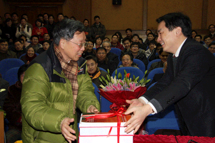有机所领导向陈庆云院士赠送了鲜花、《陈庆云院士八十华诞志庆集》、《陈庆云院士学术论文集》、《中国化学》专辑。陈庆云院士致答谢辞。