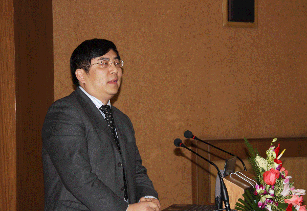 姜标所长代表有机所致辞:我们怀着崇敬及愉快的心情欢聚一堂,恭贺我们的前辈陈庆云院士八十华诞,在此,向陈庆云院士表达最诚挚的生日祝贺。