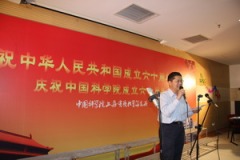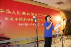 马大为副所长宣布歌会开始,在雄壮的中华人民共和国国歌声中,“热烈庆祝中华人民共和国成立六十周年歌会”拉开帷幕。首先,党委书记郏静芳同志为歌会致辞:我们欢聚一堂,举行庆祝中华人民共和国成立六十周年歌会,共庆我们伟大的祖国60华诞。60年前,毛泽东主席在天安门广场升起了第一面五星红旗,宣告了中华人民共和国成立了,开启了中国历史的新纪元。60年来,中国共产党领导全国人民以一往无前的进取精神和波澜壮阔的创新实践,谱写了中华民族自强不息、顽强奋进的壮丽诗篇。今年也是中国科学院建院60周年,明年我们即将迎来有机所建所60周年。60年来,我们有机所的职工和广大的科技工作者一起,积极投身建设新中国的伟大事业,面向国家战略需求,面向科技发展前沿,为我国经济发展、社会进步和国防安全做出了重要的贡献。