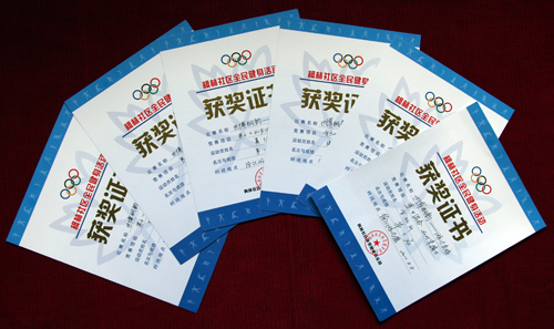 1.男女混合4*25米接力赛季军(夏建、张少敏[女]、陈晓飞、金明志);
