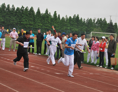 沈兆雷所长在男子干部组托球跑比赛中