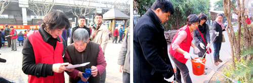 上午9点钟,有机所的学习雷锋志愿者服务队就来到了位于中山南二路的活动会场,开始了慰问孤老、宣传垃圾分类知识以及楼道清理等一系列志愿者服务活动。来自各支部的党员和入党积极分子在社区工作人员的安排下,来到了社区孤寡老人家中,为他们送去了慰问品,并且关切地询问她们的身体情况。为响应上海市政府倡导的“百万家庭低碳行,垃圾分类要先行”活动,有机所妇委在市妇联的号召下组织单位妇女志愿者们,精心制作垃圾分类的宣传单,并为社区居民认真讲解垃圾分类的重要意义和分类知识,为积极践行低碳环保尽一份力量。志愿者们还参与了维护社区环境,清理卫生死角的清洁活动。