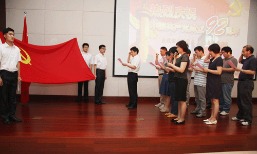 会上,郏静芳书记作了讲话,简要回顾了中国共产党92年来的发展历程。她指出,党员要时刻牢记面对党旗向党立下的庄严誓言,思考与检验自己是否在实践自己曾经向党立下的誓言,铭记责任和使命,以实际行动无愧于共产党员的光荣称号;要把践行中国特色社会主义共同理想和坚定共产主义远大理想统一起来,坚持全心全意为人民服务的根本宗旨,吃苦在前,享受在后,勤奋工作,廉洁奉公,为理想而奋不顾身去拼搏,去奋斗;要认真贯彻党的十八大关于党的建设总体要求,加强党员队伍先进性、纯洁性建设,落实到党组织和全体党员的实际行动上,在面向科学前沿领域中勇于创新,在满足国家需求,推进国家科技进步中攻坚克难,在保障科研创新的实践中发挥骨干模范作用,在本职岗位上创先争优,坚持在创先争优活动中形成的“党员公开承诺”的长效机制,发挥共产党员的先锋模范作用,不断积蓄、释放正能量,推进实施有机所“一三五”战略规划促进有机所的发展,助力中华民资伟大复兴的“中国梦”的实现。