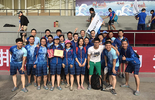比赛当日,艳阳高照,打破了往届“逢赛必雨”的 “惯例”,预示着今年的赛事将分外激烈和精彩。上海有机所参赛选手发扬“严肃、严格、严密”的所优良学风和“拼搏进取、团结协作、健康快乐”的运动精神,在预赛中用时1分46秒43完成300米赛程,以第十一名的成绩闯进半决赛;由于预赛分组处于第六组,预赛结束至半决赛开始仅有十分钟时间,这对于有机所选手的体力是一个巨大的考验,半决赛中,选手们克服困难,齐心协力、奋力拼搏,紧紧咬住领先的龙舟,以1分46秒19的成绩抵达终点,最终位列第九名,遗憾与决赛失之交臂。