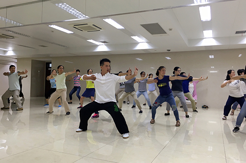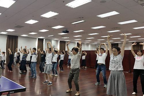 在为期2周的培训中,职工学员们利用午休时间准时参加,认真学习,积极锻炼。每次学习完,大家都感觉周身酸爽,心情愉悦,精神抖擞。通过教练们的指导,掌握了八段锦整套动作,便于大家在工作生活中的自习锻炼与健身,同时通过练习,体会到了八段锦动作“柔和连绵,滑利流畅;有松有紧,动静相兼;气机流畅,骨正筋柔”的精髓。