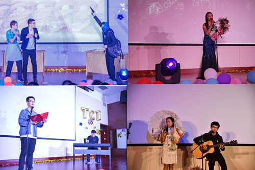 此外,高年级的同学和老师也通过精彩的表演表达了对新生的祝福。林芳和刘少娇带来的歌曲《没那么简单》将现场气氛推向了小高潮;沈毅同学的京剧《春闺梦》选段字正腔圆、劲健婉转,带我们体验了国粹的魅力;陈俊杰同学钢琴演奏《River Flows in You》,并于与周俊峰同学合作的朗诵《致橡树》带领大家回归内心的平静;弹唱表演《雨下一整晚》和歌曲《If I Die Young》也得到了现场观众热烈的掌声。