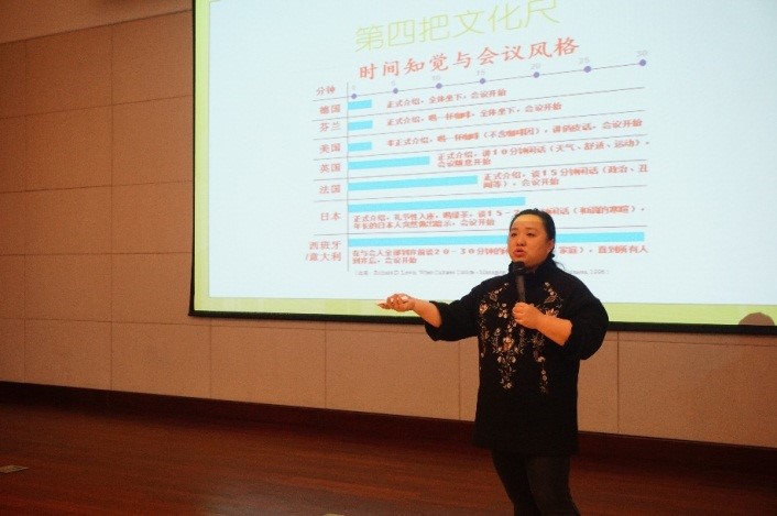 讲座伊始,庄瑜从文化的冰山图引入,向我们介绍了文化差异的表象以及内在的深层次差异,结合自身丰富的外事工作经验,为我们生动幽默的讲述生活实例和社会现象,从而总结出文化差异所带来的文化差异和价值观差异。随后,庄瑜以六把文化尺为切入角度,详细的介绍了不同国家之间文化的特色,所见所感十分生动形象,内容包罗万象,让我们在欢乐中切身体会到不同文化之间的差异以及跨文化交流时的注意事项。同时,庄瑜教给同学们提高自己交际能力的诸多方法,例如从电影中去感受不同文化的差异,学会去尊重不同的文化习俗;从走访世界优秀博物馆的过程中领域世界文化的风采,增加文化底蕴,提高自身文化积累。讲座的最后,庄瑜倡导同学们在业余时间要走出校园,多走多看多体验,提高综合素质,进而在跨文化交际的情景中更加得心应手。