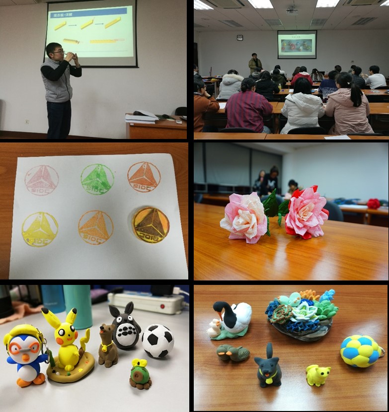 手作课程第一期是雕刻橡皮章,马晨向大家展示了有机所标志SIOC的雕刻技能,让大家从最基础的线条刻画中掌握橡皮章的刻制技巧;手作课第二期,陶杨青为大家带来一整套的皱纸玫瑰折叠教程,手把手互动式教学,一朵朵别出心裁的手工玫瑰在同学们手中绽放;第三期手作课,李宇鹏带大家走进超轻粘土的世界,李宇鹏从粘土的发展历史以及特性切入,向大家展示了一系列的粘土作品,让同学们见识到了粘土的神奇与多变。最后,李宇鹏教给大家飞行企鹅的捏制方法,在此基础上,同学们发挥想象,捏出了多种多样的粘土工艺品。