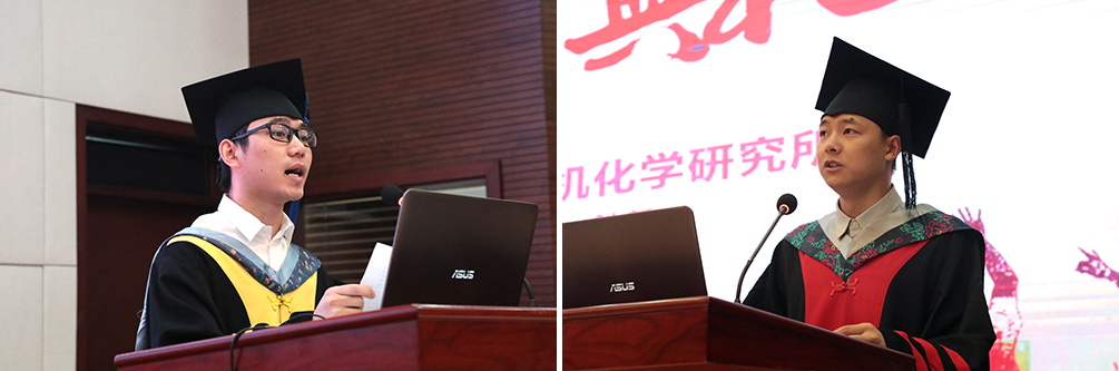 岳文俊同学代表硕士毕业生发表感言:“在有机所度过的几年记录着我们这一段最奋力拼搏的青春,其中的种种苦与甜,早已镌刻进我们不可磨灭的记忆。我们学会了在踏实严谨中探索,在沉稳内敛中创新,在荆棘与挫折中前行,在欢声与笑语中成长。我们没有因为失败而放弃,也没有因为成功而骄傲,我们学会了耐受输赢,也学会了处事不惊。我们将带着在有机所塑造的优良品格、锻炼出的过硬本领、收获到的宝贵学识,踏上新的人生征程。我们向机所保证,我们将会用一生去诠释‘博学笃志,格物明德’的校训,用行动和奋斗书写无愧于新时代、无愧于机所人的华彩篇章。”