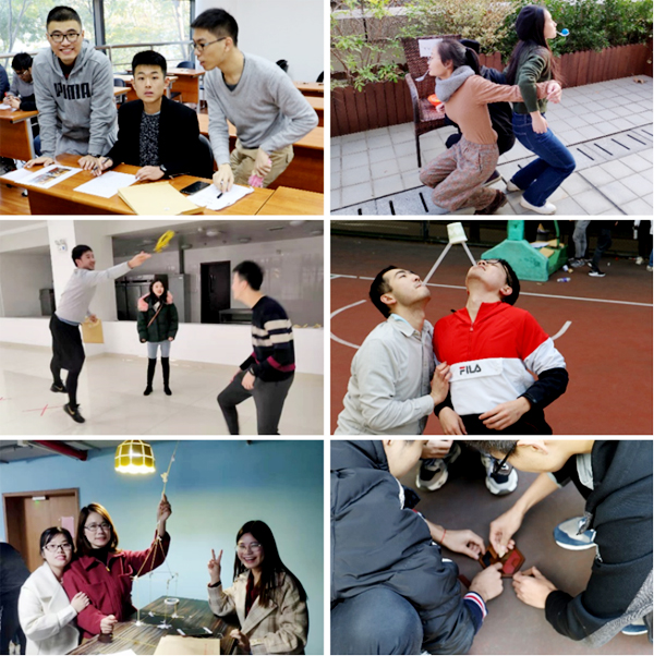 此次比赛精心设计的五个关卡:“益智小游戏”、“垃圾分类小精英&抱团搬运工”、“顶上花环”、“口口相传”、“意面挑战”,以及一个主线任务:“缺一不可”。活动要求队员们相互协作的同时积极开发脑洞,遇到关卡需要先进行分析判断再动手操作,不能单纯靠蛮力来提高闯关速度,充分体现了体力与智力相结合的重要性。
