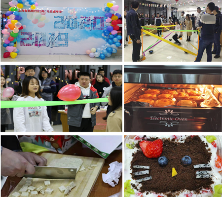 晚会在小游戏——“吸管传零食”中拉开帷幕,这个饶有趣味又非常强调团队配合的游戏瞬间就点燃了全场热烈的气氛。随后美食制作也如火如荼地展开。现场50人被分为10组,每组成员都合理分工、有条不紊地制作了水果酸奶盒子、烤鸡翅、牛轧糖和蛋挞等食物。实验练就的巧手此时也自然游刃有余,尤其是对水果酸奶盒子,大家各显神通、充分发挥艺术细胞和聪明才智,把它做成了一道道精致的艺术品。