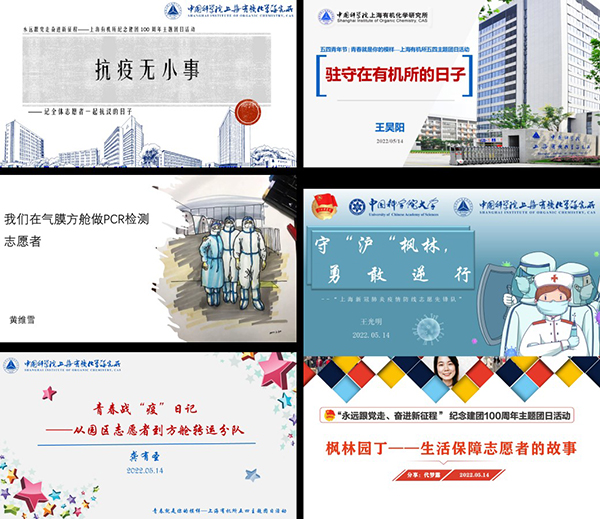 青年者,国家之魂。在抗击疫情的过程中,上海有机所涌现出了一大批战斗在抗疫一线的优秀青年。在抗疫故事分享会环节,枫林园区防疫现场工作组成员、志愿者总负责人方坦介绍了园区一线工作人员组织完成16余次的核酸检测和每日的抗原检测,分发16万余件抗疫和生活物资,保障1000余人用餐的抗疫工作,他们用毅力、汗水和奉献筑起了安全防线。PCR检测志愿者临时党支部书记黄维雪分享了所内科技青年发挥专业优势,主动前往气膜方仓实验室,通力协作、有效分工,抗住了核酸大筛的巨大样本量的考验。重大仪器保障服务队负责人王昊阳讲述了团队一丝不苟、事无巨细,做到了事事有对应,台台有落实,日日打卡巡视,全力维护研究所大型精密仪器的抗疫经历,他们为日后科研工作顺利开展奠定了坚实基础。新冠肺炎抗疫防线志愿者先锋队队长王光明介绍了先锋队在最困难的时刻,主动充当电话联络员,化身社区守护者,承担了发放物资、核酸检测、维持秩序,送物送药的服务工作,一起回顾他们守“沪”枫林,勇敢逆行的抗疫故事。徐汇区方舱转运志愿者龚有圣以身处一线的志愿者视角,介绍了他累计转运2700余人,足迹遍布徐汇区13个街道,多个市级方舱的平凡而真挚的抗疫故事。送餐保障志愿者服务队队长代梦露分享了志愿队伍承担园区内外800余人的三餐和物资保障,坚守抗疫一线,践行一名共产党员初心使命的经历。