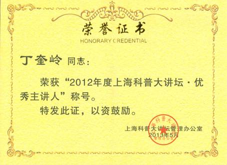 由上海市科学技术委员会、中国科学院上海分院、上海市中国工程院院士咨询与学术活动中心、上海市教育委员会等多家单位组成的上海科普大讲坛办公室对2012年度上海市科普大讲坛工作进行了总结表彰。我所丁奎岭所长荣获“2012年度上海科普大讲坛优秀主讲人”称号。