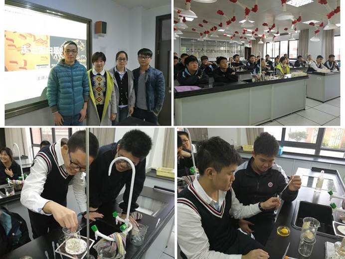 12月6日,“魅力有机化学”科普拓展课程第八讲在南洋中学顺利进行。此次课程的主题是“走进蛋白质世界”。来自生命有机化学国家重点实验室唐功利课题组的周强、罗光彩、王旭和温万红带领同学们一起领略了蛋白质世界的纷繁美丽,并通过简单而又生动的实验让同学们对蛋白质这类生物大分子的本质有了初步的认识。