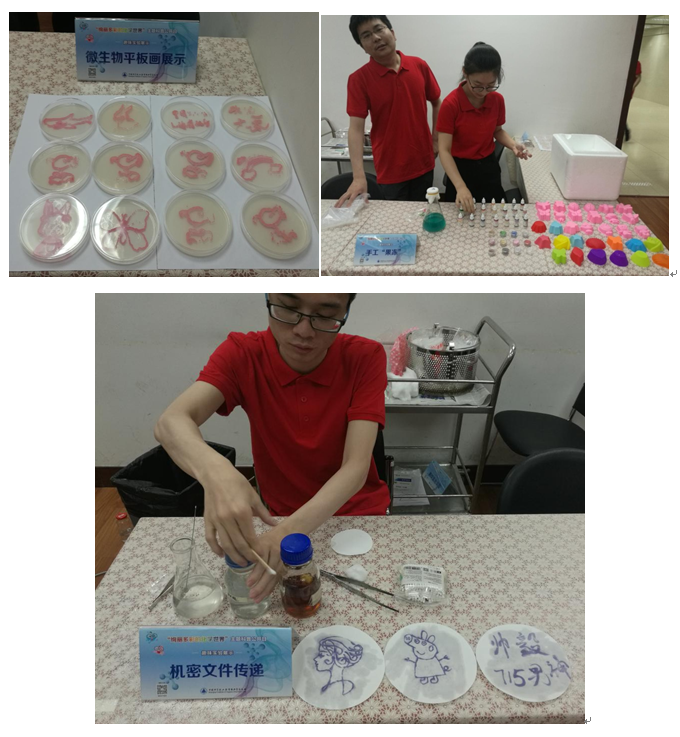 唐功利课题组准备了三个有趣的科普实验:“微生物平板画展示”、 “手工果冻”和“机密文件传递”。