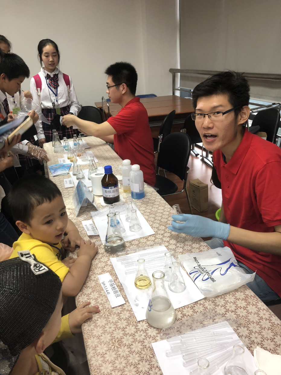 5月19日,2018年度中国科学院上海有机化学研究所 “绚丽多彩的化学世界”主题公众科学日在君谋楼举行。虽然天空淅淅沥沥地下着雨,但丝毫没有减少、和孩子、家长、和志愿者们的热情。我们又迎来了一群聪明、可爱、好奇心十足的小朋友和家长。生命有机化学国家重点实验室安排了近20个精彩的科普小实验,通过趣味的化学实验给来访的1000多位同学和家长们展示了生命有机化学的奇妙和乐趣!
