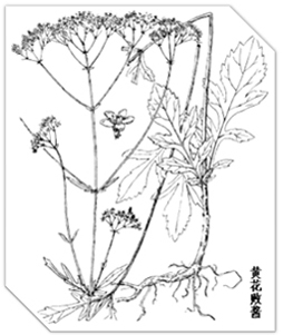 药典名称 败酱(处方名:败酱草;临床用名:败酱/败酱草;商用名称:败酱/败酱草) 英文名称 Dahurian Patrinia Herb Whiteflower Patrinia Herb, Herb of Dahurian Patrinia, Herb of Whiteflower Patrinia, Patrinia scabiosaefolia Fisch, Patrinia villosa Juss 拉丁名称 1.Herba Patriniae Scabiosaefoliae; 2.Herba Patriniae Villose 性味归经 苦、辛、凉。入肝,胃,大肠经。 临床应用 内服:煎汤,3-5钱(鲜者2-4两)。外用:捣敷。 肠痈,配用苡米、附子;产后腹痛,配用当归、川芎、乳香。此外,还用于肺炎、肝脓疡、胆道感染、急性胰腺炎、化脓性扁桃体炎和眼结膜炎、流行性腮腺炎、流行性感冒等。 临床禁忌 《本草汇言》:“久病胃虚脾弱,泄泻不食之症,一切虚寒下脱之疾,咸忌之。” 天然药物来源 败酱草为败酱科植物白花败酱、黄花败酱或其近缘植物的带根全草。白花败酱的干燥全株,长短不等;根茎有节,上生须状细根。茎圆柱形,外表黄棕色或黄绿色,有纵向纹理,被有粗毛。质脆,易折断,断面中空,白色。叶多皱缩、破碎或已脱落。全株有陈腐的豆酱气,味苦。以干燥、叶多、气浓、无泥沙杂草者为佳。产于四川、江西、福建等地。据《本草》记载,败酱应为上述败酱科植物,但除四川、江西、安徽、福建等地使用外,大部分地区习惯上以菊科植物苣荬菜Sonchus brachuyotus DC.的带根全草和十字花科植物菥蓂Thlaspi arvense L.的带果全草作败酱使用。前者习用于北方;后者习用于南方。