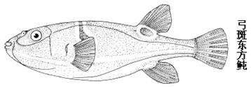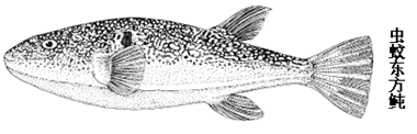 ②虫蚊东方鲀:本种与弓斑东方鲀的区别是:有许多圆形和长虫纹形白点。