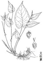 支柱蓼为多年生草本,高20-40cm,全草无毛,根茎肥厚,具节,不弯曲,紫褐色;须根甚多。茎丛生或单一,细长,绿色,不分枝。基生叶柄长15-25cm;茎生叶互生,下部的具柄,上部的渐至无柄;叶柄基部具膜质托叶鞘2枚,有明显的脉,无缘毛;叶片卵形或广卵形,质薄,长3-15cm,宽1.5-9cm,先端锐尖,微弯,基部心形。穗状花序,顶生或腋生;花白色,花梗短小,基部具小苞片;花被5深裂;雄蕊8;花柱3,基部合生,柱头头状。瘦果卵形,有三锐棱,黄褐色,有光泽。花期4-5月,果期5-7月。 |