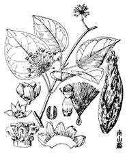 南山藤为萝藦科植物南山藤的全株或块状茎,是粗壮大藤本。茎具皮孔。枝条具小瘤状突起。叶对生;叶柄长2.5-6cm;叶片宽卵形或近圆形,长8-15cm,宽5-12cm,先端急尖或短渐尖,基部截形或浅心形,几无毛。伞形状聚伞花序腋生;倒垂;花萼裂片5,外面被柔毛,内面有腺体多个;花冠黄绿色,夜吐清香,裂片5裂,宽卵形;副花冠裂片着生于雄蕊背面,肉质膨胀;花粉块每室1个,直立;子房具疏柔毛,花柱短,柱头先端具圆锥状突起。裚果披针状圆柱形,长达12cm,直径约3cm,外果皮被白粉,具皱纹棱条。种子宽卵形,扁平,有薄边,长达1.2cm,宽约6mm,先端具白色绢质种毛,长达4.5cm。花期4-9月,果期7-12月。
