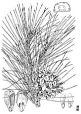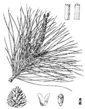 3、赤松属乔木,高达30m,胸围达1.5m。树皮橘红色,不规则鳞片状脱落。一年生枝淡黄色或红黄色,微有白粉,无毛;冬芽长圆状卵圆形,暗红褐色。针叶2针一束,长5-12cm,径约1mm,先端微尖,两面有气孔线,边缘有细锯齿,横切面半圆形,树脂道约4-6个,边生。雄球花淡红黄色,圆筒形,长5-12mm,聚生于新枝下部呈短穗状;雌球花淡红紫色,单生或2-3个聚生,一年生小球果的种鳞先端有短刺。球果熟时暗黄褐色或淡褐黄色;种鳞张开,易脱落,有微隆起的横脊,鳞脐平或微凸起,有短刺。种子倒卵状椭圆形或卵圆形,长4-7mm,连翅长1.5-2cm,种翅宽5-7mm。花期4月,果熟期翌年9-10月。