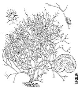 头发七为松萝科植物亚洲树发、双色树发、树发、沟树发的地衣体。