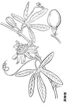 西番莲是多年生草质藤本。茎圆柱形,略具棱槽,有多数分枝,老枝常带紫红色;卷须腋生,长13-17cm。叶互生;叶柄长2-3cm;中部散生2-6个小腺体;托叶较大,肾形,抱茎;叶掌状5深裂,长5-7cm,宽6-8cm,裂片长椭圆形,中央的较大,两侧的略小,全缘。单花腋生,花大,直径6-10cm,淡绿色;苞片3,宽卵形;萼片5,背面近先端有一角状物;花瓣5,长圆状披针形,与萼片近等长;副花冠裂片3轮,丝状,白色,上下两端带蓝色或紫红色;内花冠流苏状,紫红色,其下具花盘;雄蕊5,花丝基部与子房柄合生;子房卵圆形,花柱3,紫红色。浆果卵形或近球形,熟时黄色。种子多数,有红色假种皮。花期5-7月。 |