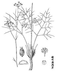 2.松叶西风芹与竹叶西风芹的区别为:叶片为二至四回三出式全裂,末回裂片狭线形,极少为线状披针形,长0.7-6.5cm,宽达3mm。