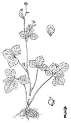 禺毛莨是多年生草本,高25-80cm。须根多数,簇生。茎直立,上部有分枝,密生开展的黄白色糙毛。茎生叶为三出复叶;叶柄长达15cm;叶片轮廓宽卵形或肾圆形,长和宽均约3-9cm;中央小叶具长柄,椭圆形或菱形,3裂,边缘具密锯齿;侧生小叶具较短柄,2-3深裂,两面有糙毛;茎上部叶较小,3全裂,有短柄或无柄。花序有较多花,疏生;花两性;直径1-1.2cm;花梗长2-5cm,密生开展的黄白色糙毛;萼片5,卵形,长约3mm,有糙毛;花瓣5,椭圆形,长5-6mm,宽2.5-3mm,黄色,基部有爪,蜜槽上有倒卵形小鳞片;雄蕊多数,花药长约1mm;花托长圆形,有白色短毛;心皮多数,无毛。瘦果扁,狭倒卵形,长约3-4mm,边缘有宽约0.3mm的棱翼,喙长约1mm。花、果期4-7月。 |