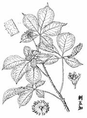 化合物成分:刺五加甙(eleutheroside)A、B、B1、C、D、E,刺五加甙A即是胡萝卜甙(daucosterol),刺五加甙B即是丁香甙(syringin)、芥子醛葡萄糖甙(sinapaldehyde glucoside),松柏醛葡萄糖甙(coniferaldehyde glucoside),松柏甙(coniferin),鹅掌楸甙(liriodemdrin),苦杏仁甙(amygdalin),3β-[O-β-D-吡喃葡萄糖基(1→3)-O-β-D-吡喃半乳糖基(1→4)-[O-α-L-吡喃鼠李糖基-(1→2)]-O-β-D-吡喃葡萄糖醛酸基]-16α-羟基-13β,28-环氧齐墩果烷{3β-[O-β-D-glucopyranosyl-(1→3)-O-β-D-galactopyranosyl-(1→4)-[O-α-L-rhamnopyranosyl-(1→2)]-O-β-D-glucoronopyranosyl]-16α-hydroxy-13β,28-epoxyoleanane},3β-[O-α-L-吡喃鼠李糖基(1→4)-O-α-L-吡喃鼠李糖基(1→4)-[O-α-L-吡喃鼠李糖基-(1→2)]-β-D-吡喃葡萄糖基-(1→x)-O-β-D-吡喃葡萄糖醛酸基]-16α-羟基-13β,28-环氧齐墩果烷{3β-[O-α-L-rhamnopyranosyl-(1→4)-O-α-L-rhamnopyranosyl(1→4)[O-α-L-rhamnopyranosyl(1→2)]-O-β-D-glucopyranosyl(1→x)-O-β-D-glucoronopyranosyl]-16α-hydroxy-13β,28-epoxyoleanane},芝麻素(seasamin),松柏醛(coniferylaldehyde),香草醛(vanillin),异秦皮定(isofraxidin),丁香树脂酚(syringaresinol),丁香酸(syringic acid),香草酸(vanillic acid),羟基苯甲酸(hydroxybenzoic acid),对-香豆酸(p-coumaric acid),阿魏酸(ferulic acid),绿原酸(chlorogenic acid),咖啡酸(caffeic acid),1,5-二-O-咖啡酰奎宁酸(1,5-di-O-caffeoylquinic acid),油酸甲酯(methyloleate),油酸乙酯(ethyloleate),10,13-十八碳二烯酸甲酯(10,13-octadecadienoic acid methylester),10,13-十八碳二烯酸乙酯(10,13-octadecadienoic acid ethyl ester),9,11-十八碳二烯酸(9,11-octadecadienoic acid),十六碳三烯酸(hexadecatrienoic acid),肉豆蔻酸(myristic acid),棕榈酸(palmitic acid),硬脂酸(stearic acid),白桦脂酸(betulic acid)及β-谷甾醇(β-sitosterol),刺五加多糖AS-Ⅱ、AS-Ⅲ及水溶性刺五加多糖PES-A、PES-B,异秦皮定-7-O-β-D-葡萄糖甙(isofraxidin-7-O-β-D-glucoside)即刺五加甙B1,丁香甙,右旋-丁香树脂酚-二-O-β-D葡萄糖甙(syringaresinol-di-O-β-D-glucoside),右旋-丁香树脂酚-O-β-D-葡萄糖甙(syringaresinol-O-β-D-glucoside),右旋-松脂酚-二-O-β-D-葡萄糖甙(pinoresinol-di-O-β-D-glucoside),右旋-松脂酚-O-β-D-葡萄糖甙(pinoresinol-O-β-D-glucoside),右旋-杜仲松脂酚-二-O-β-D-葡萄糖甙(medioresinol-di-O-β-D-glucoside),异秦皮定、绿原酸及2,6-二甲氧基苯醌(2,6-dimethoxybenzoquinone),刺五加甙I、K、L、M,刺五加叶甙(ciwujianoside)A1、A2、A3、A4、B、C1、C2、C3、C4、D1、D2、D3、E,常春藤皮甙B(hederasaponin B)齐墩果酸-3-α-吡喃鼠李糖基(1→2)-O-α-吡喃阿拉伯糖甙[3-O-α-rhamnopyranosyl(1→2)-arabinopyranosyl oleanolic acid]及30-去甲-12,20(29)-齐墩果二烯-28-酸-3-O-α-吡喃阿拉伯糖甙[3-O-α-arabinopyranosyl-30-norolean-12,20(29)-dien-28-oic acid],金丝桃甙(hyperin),3,4-二羟基苯甲酸(3,4-dihydroxy benzoic acid)。