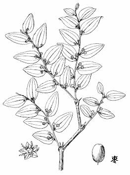2.无刺枣:无刺枣苄甙(zizybeoside)Ⅰ及Ⅱ,无刺枣因(daechuine)S3,催吐萝芙木醇(vomifliol),6,8-二-C-葡萄糖-2(S)-柚皮素[6,8-di-C-glucosyl-2(S)-naringenin],6,8-二-C-葡萄糖基-2(R)-油皮素[6,8-di-C-glucosyl-2(R)-naringenin],棕榈油酸(palmitoleic acid),11-十八碳烯酸(vaccenic acid),油酸(oleic acid)以及环磷酸腺甙,无刺枣阿聚糖(zizyphus-arabinan),糖脂(glycolipid),磷脂(phospholipid)等。