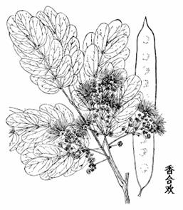 药典名称 独脚金鸡 英文名称 无 拉丁名称 Albizia odoratissima(L. f.) Benth. 性味归经 味甘、苦,性平。 临床应用 治风湿性关节炎、跌打骨折、外伤出血、疮疡、疥癣和失眠。 临床禁忌 尚未见报道。 天然药物来源 独脚金鸡为豆科植物香合欢的根及树皮。 香合欢是常绿大乔木,高5-15m,无刺。小枝初被柔毛。二回羽状复叶;总叶柄近基部和叶轴的顶部1-2对羽片间各有腺体1枚;羽片2-4(-6)对;小叶6-14对,纸质,长圆形,长2-3cm,宽7-14mm,先端钝,有时有小尖头,基部斜截形,两面稍被贴生、稀疏短柔毛,中脉偏于上缘,无柄。头状花序排成顶生、疏散的圆锥花序,被锈色短柔毛;花淡黄色;花萼长约为花冠的五分之一;花冠长约5mm,裂片披针形;雄蕊多数;子房被锈色柔毛。荚果长圆形,长10-18cm,宽2-4cm,扁平,嫩荚密被极短的柔毛,成熟时变稀疏。种子6-12颗。花期4-7月,果期6-10月。 为低海拔疏林中常见树种,分布于福建、广东、广西、贵州、云南。 化学及生物研究进展 化合物成分:香须素(odoratissimin)等。 药理作用: ★抗菌 ★抑制血小板聚集 ★杀虫 参考文献 ①中华本草 ②中药数据库(中药创新中心、TCMCD-2009) ③MDL数据库