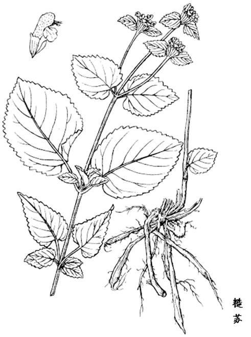 糙苏的根粗,须根肉质。茎呈方柱形,长50-150cm,多分枝,表面绿褐色,具浅槽,疏被硬毛;质硬而脆,断面中央有髓。叶对生,皱缩,展平后呈近圆形、圆卵形或卵状长圆形,长5.2-12cm,先端急尖,基部浅心形或圆形,边缘具锯齿,两面均疏被短柔毛;叶柄长1-12cm,疏被毛。轮伞花序密被白色毛;苞片线状钻形,紫红色。花萼宿存呈蜂窝状。气微香,味涩。