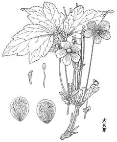 大火草是多年生草木,高40-150cm。根茎粗0.5-2cm。基生叶3-4;叶柄长16-48cm,密被白色短绒毛;三出复叶,间或有1-2叶为单叶;小叶卵形,长9-16cm,宽7-12cm,先端急尖,基部心形或圆形,3裂,边缘有不规则小裂片和锯齿,上面有糙伏毛,下面密被白色绒毛,中央小叶柄长5.2-7.5cm;侧生小叶稍斜,形状似中央小叶,但叶柄较短。聚伞花序二至三回分枝,密被白色短绒毛;苞片3,轮生,叶状,不等大,有时为1,3深裂;花梗长3.5-6.8cm,有短绒毛;花两性,萼片5,花瓣状,粉红色或白色,倒卵形或宽倒卵形,长1.5-2.2cm,宽1-2cm,下面被短绒毛;花瓣无;雄蕊多数,长约为萼片长的1/4;心皮400-500,长约1mm,密被绒毛。花期7-10月,果期8-11月。