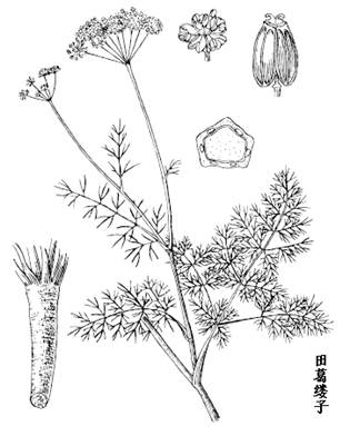田葛缕子是多年生草本,高50-80cm。根圆柱形,长达18cm,直径0.5-2cm。茎基部有叶鞘纤维残留物。基生叶及茎下部叶有柄,长6-12cm;叶片轮廓长圆状卵形或披针形,长8-15cm,宽5-10cm,三至四回羽状分裂,末回裂片线形;茎上部叶通常二回羽状分裂,末回裂片细线形;总苞片2-4,线形或线状披针形;伞辐10-15;小总苞片5-8,披针形;小伞形花序有花10-30,无萼齿;花瓣白色。果实长卵形,每棱槽内油管1,合生面油管2。花果期5-10月。