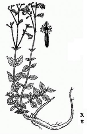 瓦草属多年生草本,斜卧,高约50cm。根圆锥形,肉质肥厚。茎中空,具膨大的节,被有短柔毛及腺毛。叶对生;无柄;叶片椭圆形或椭圆状卵形,长4-5cm,宽2-3cm,先端锐尖,基部楔形,边缘微呈波状,两面具乳突及短柔毛。二歧聚伞花序顶生;萼筒绿色,密被腺毛,先端5裂;花瓣5,淡红色,匙状倒披针形,喉部具副花冠,鳞片2深裂;雄蕊10,花丝吐露,花药白色,丁字着生;子房上位,花柱3枚,分生。蒴果圆锥形,1室。种子肾形,棕色。花期6-9月,果期9-10月。