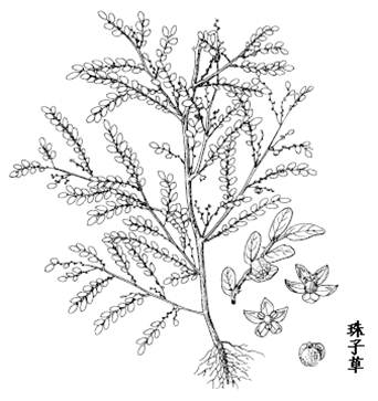 化合物成分:叶下珠脂素(phyllanthin),紫云英甙(astragalin),去甲一叶萩碱(norsecurinine),霸贝菜素(nirphyllin),新木质素(neolignin),霸贝菜素乙酸酯(phyllnirurin),槲皮甙(quercitrin),异槲皮甙(isoquercitrin),叶下珠次素(hypophyllanthin),霸贝菜碱(niruine),氨基酸(amino acid),老鹳草鞣质(geraniin),并没食子酸(ellagic acid),没食子酸(gallic acid),三十烷醛(triacontanal),三十烷醇(triacontanol),珠子草次素(nirtetralin),珠子草素(niranthin),叶下珠子素(phyltetralin),叶下珠酯(phyllester),β-谷甾醇(β-sitosterol),三十烷酸(triacontanoic acid),鞣云实精(corilagin)和硫基甲基氧丙基左旋脯氨酸(captopril)等。
