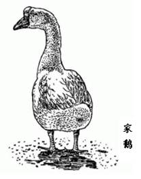家鹅的体长约60-80cm。嘴扁阔,前额有肉瘤,雄者膨大,黄色或黑褐色。颈长。体躯宽壮,龙骨长,胸部丰满。尾短。羽毛白色或灰色。脚大有蹼,黄色或黑褐色。体躯站立时昂然挺立。