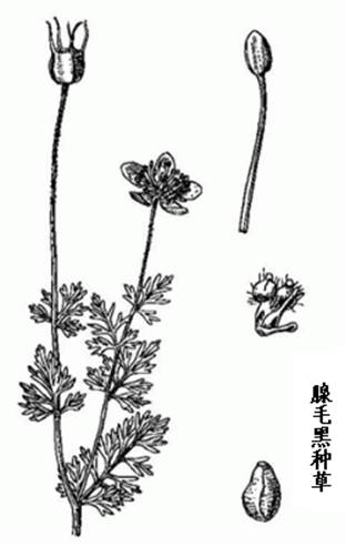 黑种草为毛莨科植物腺毛黑种草的全草。