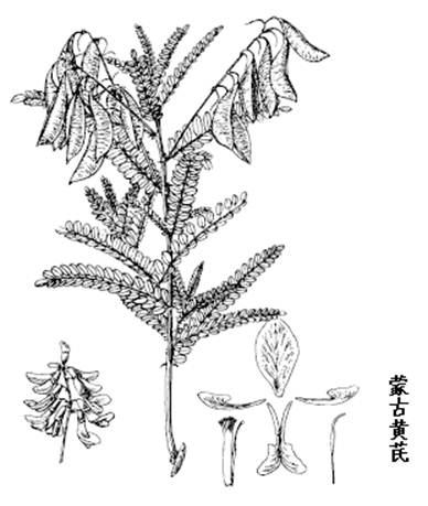 1.蒙古黄芪属多年生草本,高50-150cm。根直而长,圆柱形,稍带木质,长20-50cm,根头部径1.5-3cm,表面淡棕黄色至深棕色。茎直立,上部有分枝,被长柔毛。奇数羽状复叶,互生;叶柄基部有披针形托叶,长约6mm;小叶25-37片,小叶片宽椭圆形,长4-9mm,先端稍钝,有短尖,基部楔形,全缘,两面有白色长柔毛。总状花序腋生,有花10-25朵,排列疏松;小花梗短,生黑色硬毛;苞片线状披针形;花萼筒状,长约5mm,萼齿5,有长柔毛;花冠黄色,蝶形,长不及2cm,旗瓣三角状倒卵形,无爪,先端微凹,翼瓣和龙骨瓣均有长爪;雄蕊10,二体;子房有柄,光滑无毛,花柱无毛。荚果膜质,膨胀,卵状长圆形,宽11-15mm,先端有喙,有显著网纹。种子5-6颗,肾形,黑色。花期6-7月,果期8-9月。
